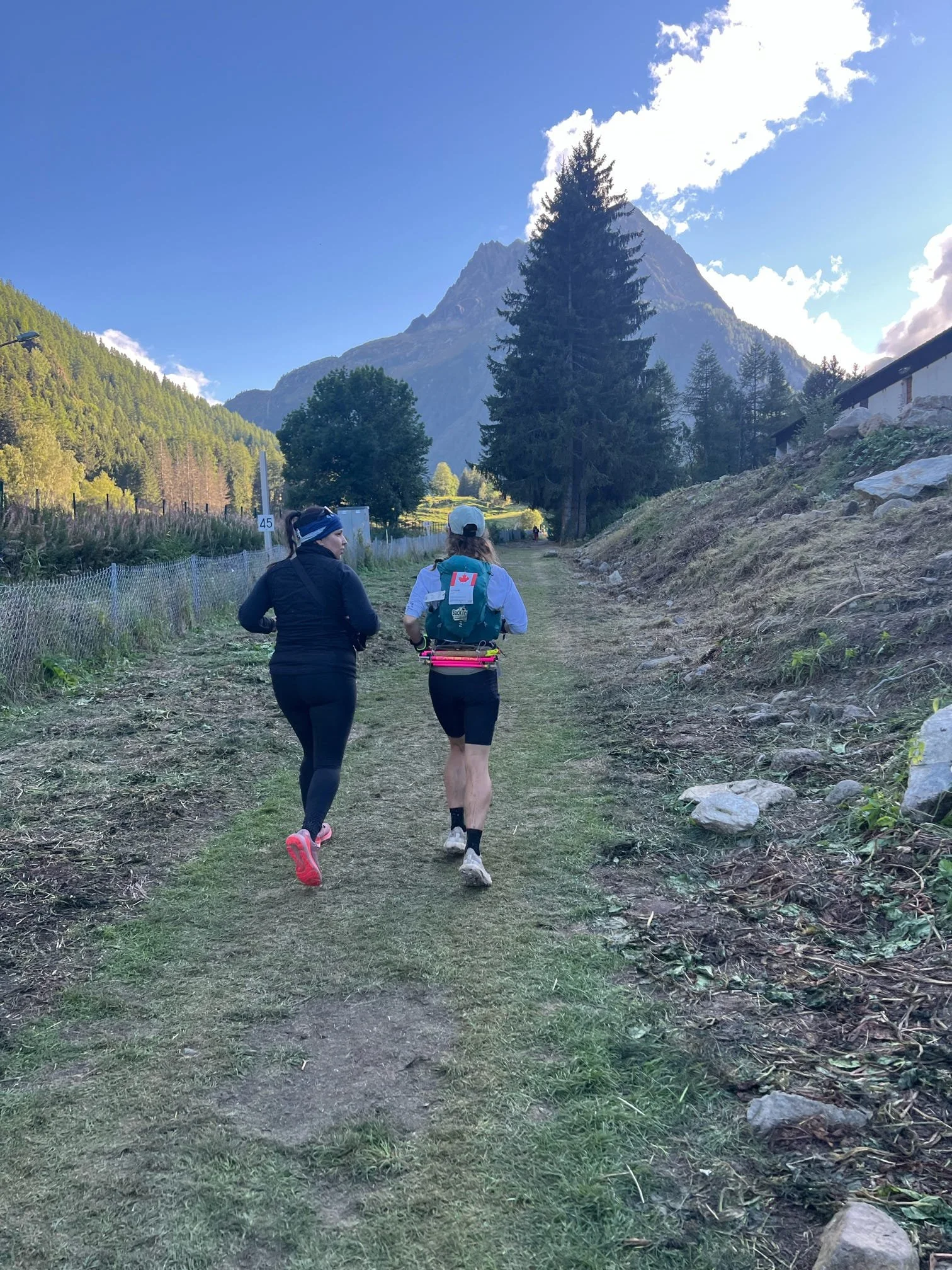 Running Kelsey out of the last crewed aid station in Vallorcine, 18km to the finish!