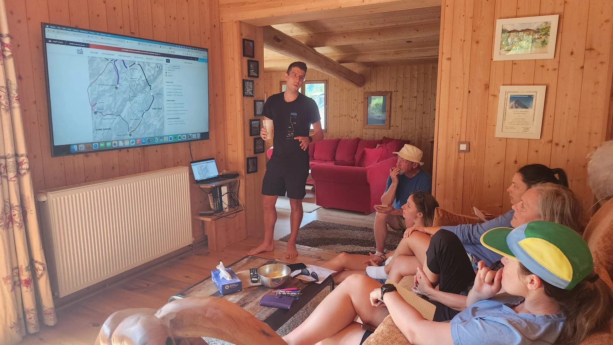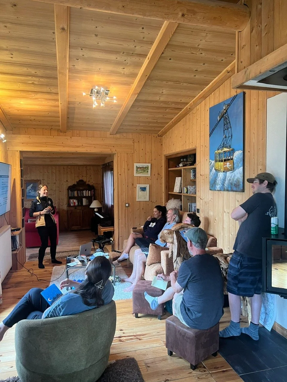 Off we go, flying to Geneva, Switzerland, then hopping on a bus to Chamonix, and a quick 20-minute walk to our chalet in the picturesque town at the foot of Mont Blanc. Kelsey and Adam had been in the area training and acclimatizing for a couple of weeks and met me, Kelsey’s parents Noel and Jane, and her brother Riley on Friday, August 22. Two other crew members, Kelli-Nicole and Steven, were arriving the following day. Once everyone made it to Chamonix safely and on time, I had a sense of relief as we could then start some of the more detailed logistical planning – TDS was starting in 2 days!